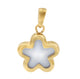 10K solid gold, 11.5 x 13.5mm heart pendant with a mother of pearl. Weight is 1.3g.